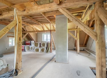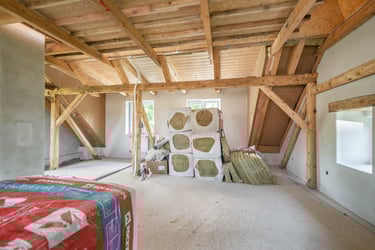 Sádrokartony a rozvod vody a elektřiny: Pokud plánujete využívat i druhé patro, sádrokartony na stropy a rozvod vody a elektřiny jsou nezbytné. Schody pak spojí obě patra.